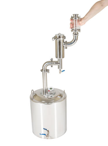 Заключительный этап очистки — сухопарник с краном для слива. На его стенках происходят повторная конденсация и переиспарения спирта. Одновременно с эффективной очисткой происходит и ароматизация напитка. (Попробуйте добавить в сухопарник цедру лимона или ароматные травы).